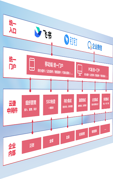 对协作平台提供支持服务,,,支持企业应用与协作平台对接,,,包含组织同步、、、消息集成、、、待办集成等。。支持目前主流的协作平台:钉钉、、企微和飞书。。。